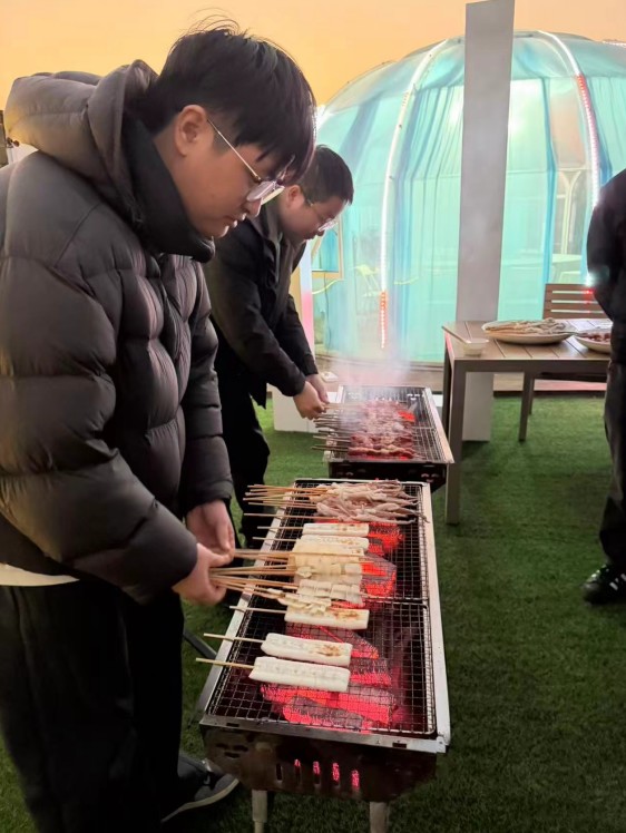 L'activité de team building comprenait également un barbecue en libre-service pour les collaborateurs. Lors de l'événement, tout le monde a travaillé ensemble, préparant les ingrédients et cuisinant, avec des tables remplies de divers ingrédients frais et de plats délicieux. Les employés étaient assis ensemble, profitant du barbecue tout en discutant de leur travail et de leur vie, avec des rires et de la joie dans l'air. Tout le monde a levé son verre et a discuté joyeusement, démontrant pleinement l'atmosphère de travail harmonieuse et chaleureuse de l'équipe de Yongjun Textile.